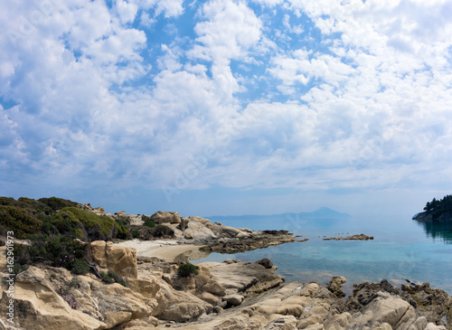 Beautiful scenery by the sea in Vourvourou, Chalkidiki, Greece