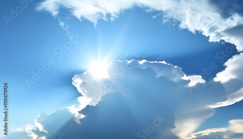 Beautiful sky with sunshine and clouds, artistic landscape in the air.