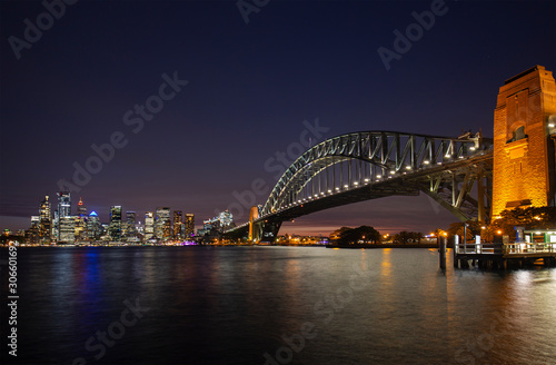 Beautiful view of Sydney Harbour Bridge and the city at night looking from Milsons Point in Sydney, Australia