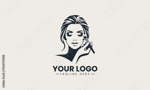 Beautiful young girl applying elegant makeup with a gentle smile in a modern cartoon vector logo illustration design