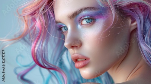 Beauty Fashion Model Girl with Colorful Dyed Hair. Girl with perfect Makeup and Hairstyle. Model with perfect Healthy Dyed Hair. Rainbow Hairstyles