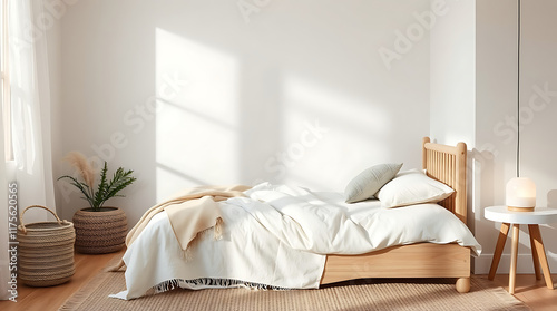 Bedroom Interior with Wooden Bed and Accessories