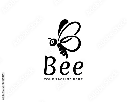 bee silhouette flying logo template illustration