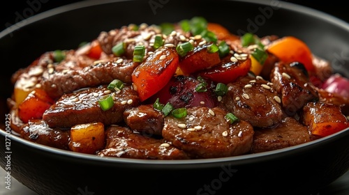 Beef Stir-Fry with Vegetables and Sesame Garnish. Generative AI