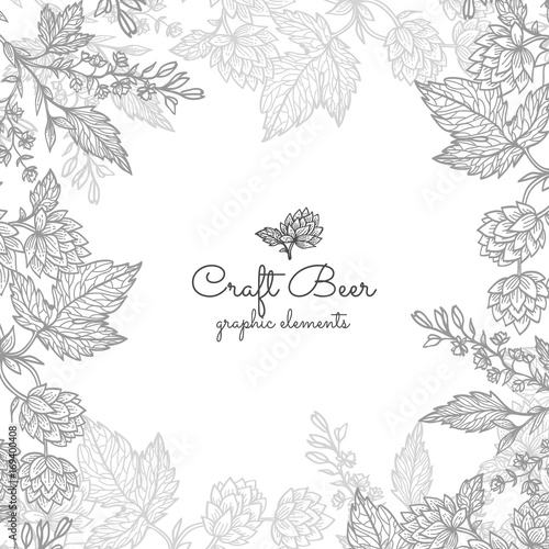 Beer hops branch with leaves and hop cones. Vintage engraved hops for labels, packaging, poster with production process brewery beer. Hand drawn design element. All element isolated.