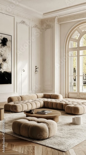 Beige Sectional Sofa in a Classic Interior