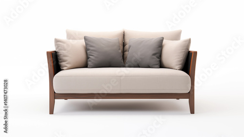 Beige Sofa with Wooden Frame Gray Pillows
