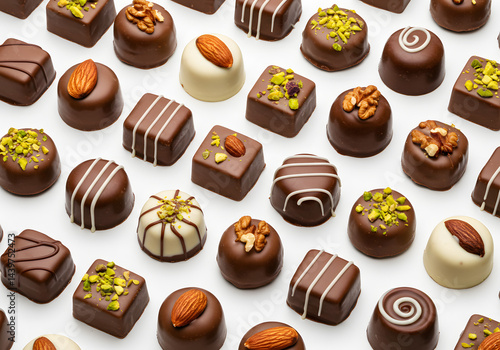 Belgian Pralines Diagonal Arrangement Bright Lighting Glossy Texture