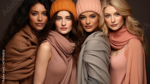 Below Group Happy Multiracial Female Friends, Bright Background, Background Hd