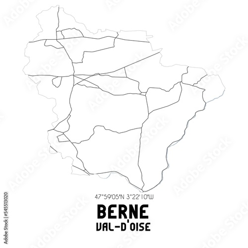 BERNE Val-d'Oise. Minimalistic street map with black and white lines.