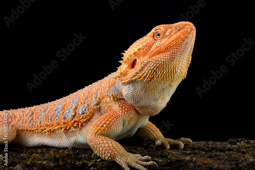 Big bearded dragon lizard on black background