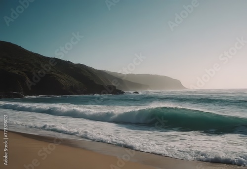 Big breaking Ocean wave on a sandy beach on the north shore of Oahu Hawaii