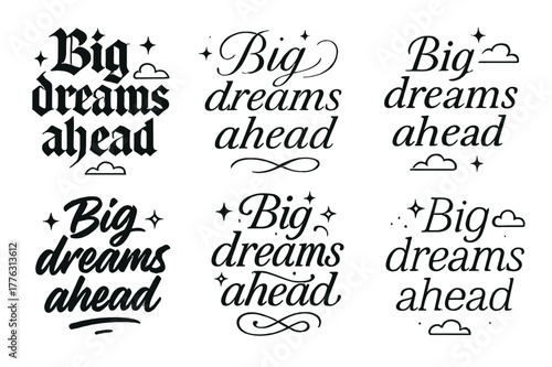 Big Dreams Calligraphy. Big dreams ahead. Create a calligraphy lettering illustration of the phrase: Big