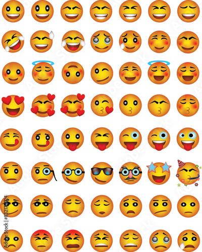 Big set of emoticon smile icons. Cartoon emoji set. Vector emoticon set
