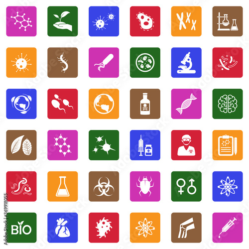 Biology Icons. White Flat Design In Square. Vector Illustration.