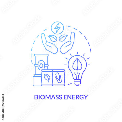 Biomass energy blue gradient concept icon. Natural renewable materials power abstract idea thin line illustration. Isolated outline drawing. Roboto-Medium, Myriad Pro-Bold fonts used