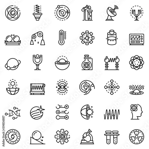 Biophysics icons set. Outline set of biophysics vector icons for web design isolated on white background