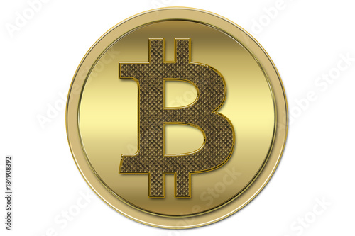 Bitcoin dorado sobre fondo blanco.