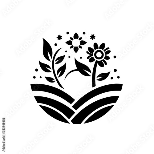 Black & White Floral Meadow Silhouette - Vector Design Element