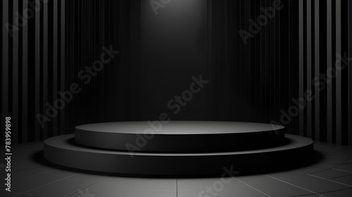 Black 3d podium display product background, mock up for web design with geometric forms
