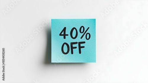 Black '40% OFF' Text on a Turquoise Square Paper Note. White Background with Copy Space