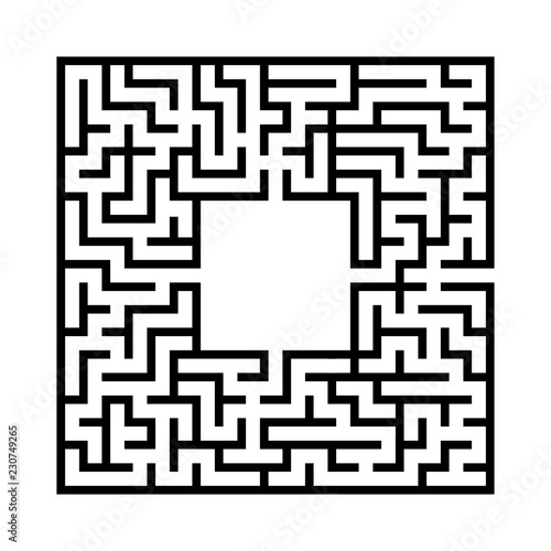 Black abstract square maze with a place for your image. An interesting and useful game for kids. A simple flat vector illustration isolated on a white background.
