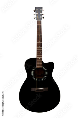 Black acoustic guitar on a white background