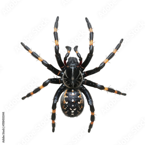 Black and orange spider transparent background macro nature studio close-up insect anatomy