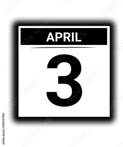 Black and white color April month calendar date 3