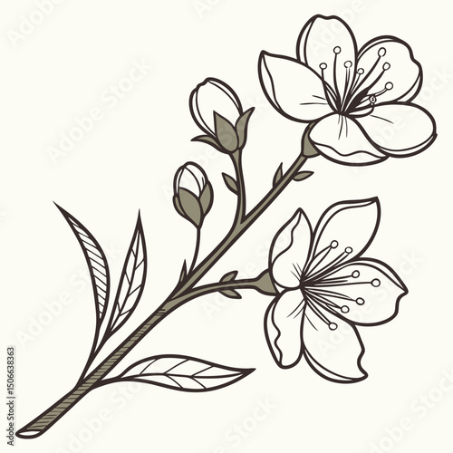 Black and white floral design with vintage flower and leaf pattern illustration