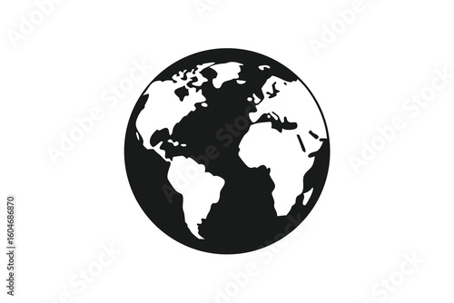 Black and White Globe Illustration Showing Continents for Global Business and Environmental Concepts