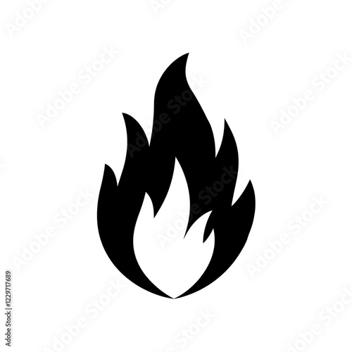 Black and White Heart-Shaped Flame Vector Illustration with a Nostalgic Vibe, Isolated on White