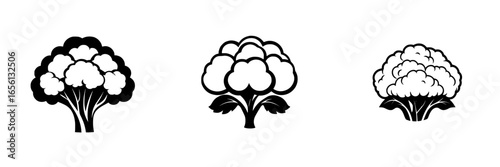 Black and white illustrations of cauliflower in various styles showcasing the vegetable's unique shapes