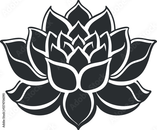 Black and white lotus flower design, ideal for tattoos or decorative art projects.