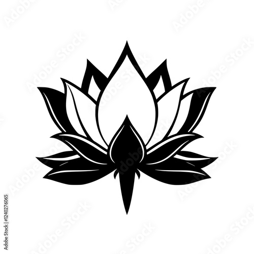 Black and White Lotus Flower: Elegant Floral Design, Botanical Illustration, Nature Symbol, Sacred Geometry, Spiritual Art, Simple Minimalist Vector Graphic