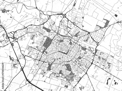 Black and white map poster of Modena, Italy, illustrated in hand-drawn style.
