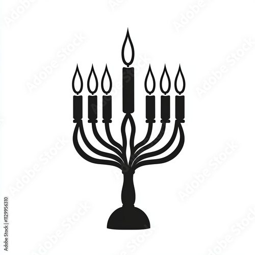 Black and white silhouette illustrates a Hanukkah menorah, showcasing elegant lines and a modern aesthetic suitable for festive celebrations and decor