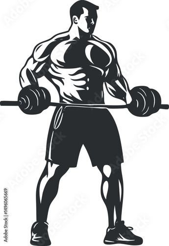 Black and white silhouette of a muscular man lifting a barbell demonstrating strength and fitness