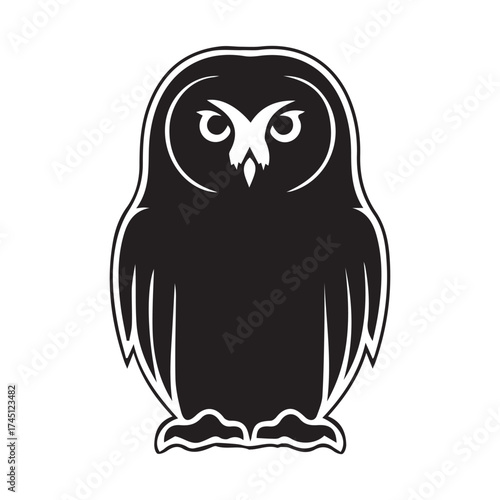 black and white silhouette outline owl art logo design set.