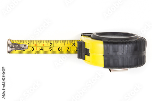 Black and yellow measuring tape isolated on white background