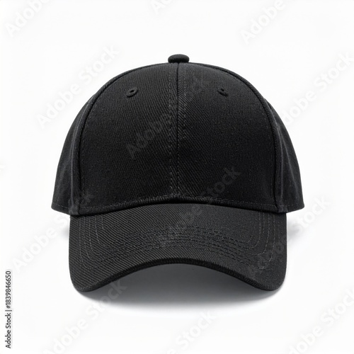 Black Baseball Cap on White Background in Studio Lighting Front View