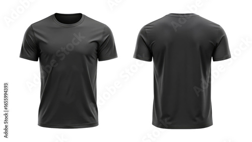 Black blank t shirt template from two sides isolated on transparent white background, clipping pat