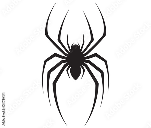 Black cartoon spider silhouette isolated on white background, Arachnid silhouette icon