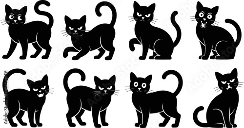 Black cats vector illustration set adorable scary halloween cats cartoon vector graphic design template 100 editable stock vector illustration