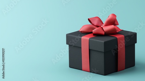 Black Christmas gift box with red bow and ribbon, 3D illustration