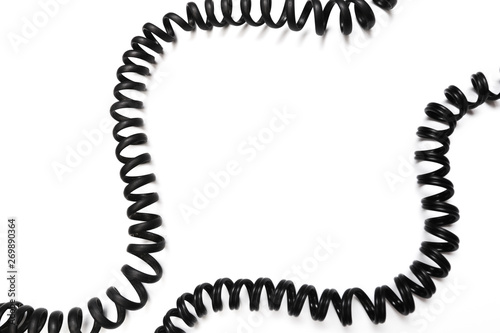 Black curl power cable socket isolated on white background
