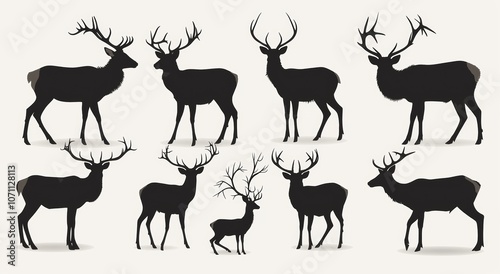 Black Deer and Doe Silhouettes Set on White Background