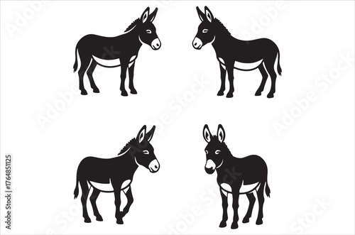 Black donkey silhouettes in various poses animal white set, bundle, vector, isolated on white background, cutout, png, clipping path, transparent, image, download, 2025,2026 Simple element illustratio