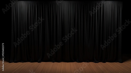 Black Drapes on Stage with Wooden Floor for Theatrical Performance