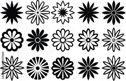 Black floral motifs on white background flower pattern
